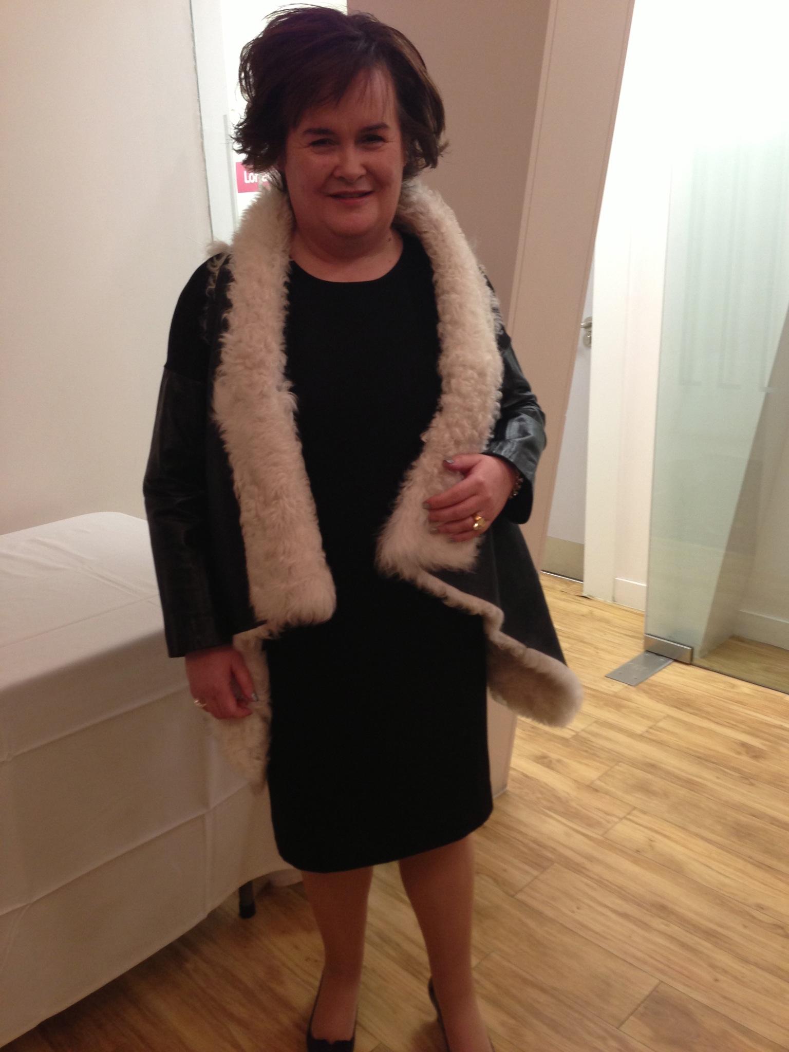 Susan Boyle wearing her fabulous new outfit she bought in @Bloomingdales NYC yesterday.... Looking fantastic!pic.twitter.com/nHw7AWgY
